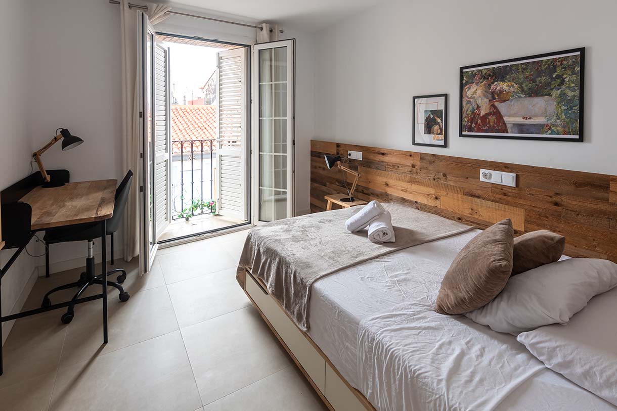 La habitación tiene una cama doble y tiene muchísima luz natural. Es una habitación exterior con vista hacia Paseo de San Juan. Hay un colchón súper cómodo con edredón, almohadas y ropa de cama. Todas las habitaciones cuentan con una bata de baño suave y esponjosa y toallas.